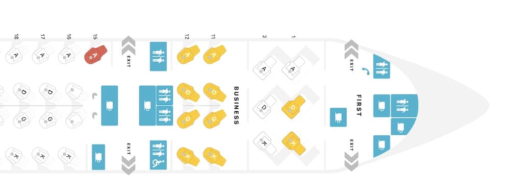 There are 6 first class seats across 2 rows. All first class seats have direct aisle access.