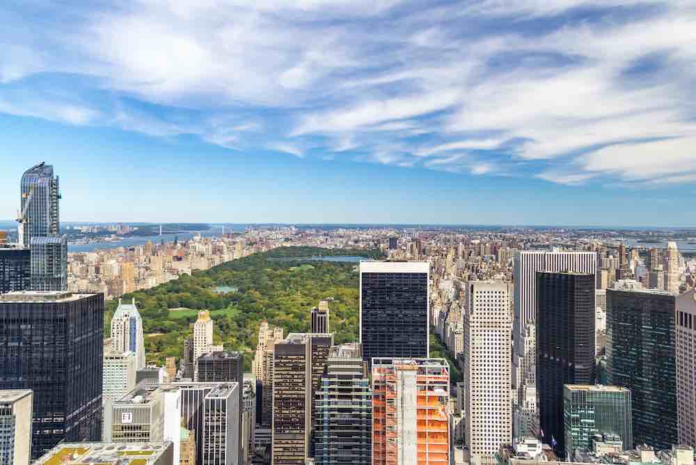 The best Instagrammable spots at the Top of the Rock observation deck are the views of Central Park and the Manhattan skyline.