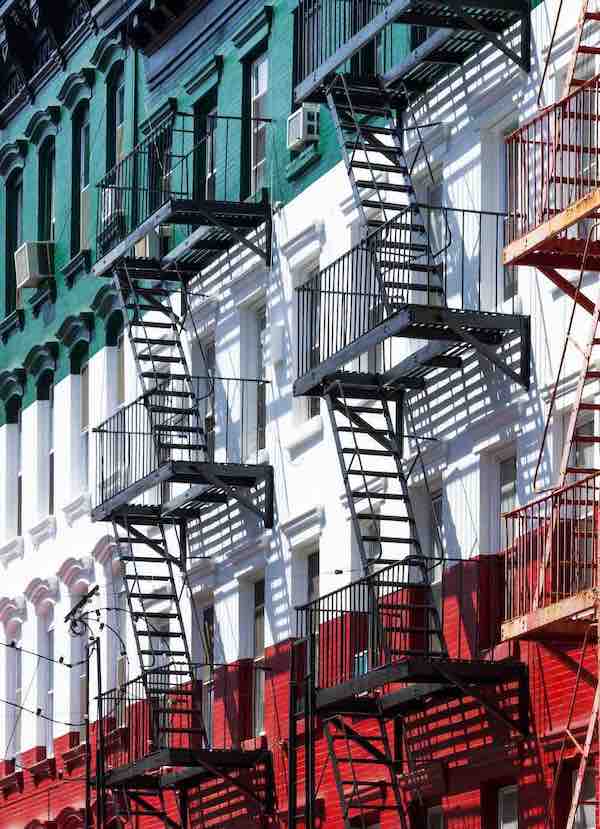 Block of painted apartment buildings in Little Italy in Manhattan, New York City