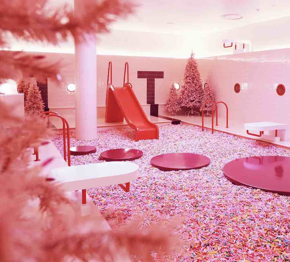 The museum features several different rooms, each with its theme. There is a room filled with giant ice cream cones, a room with a pool of sprinkles, and even a room where you can ride in a giant ice cream sundae!