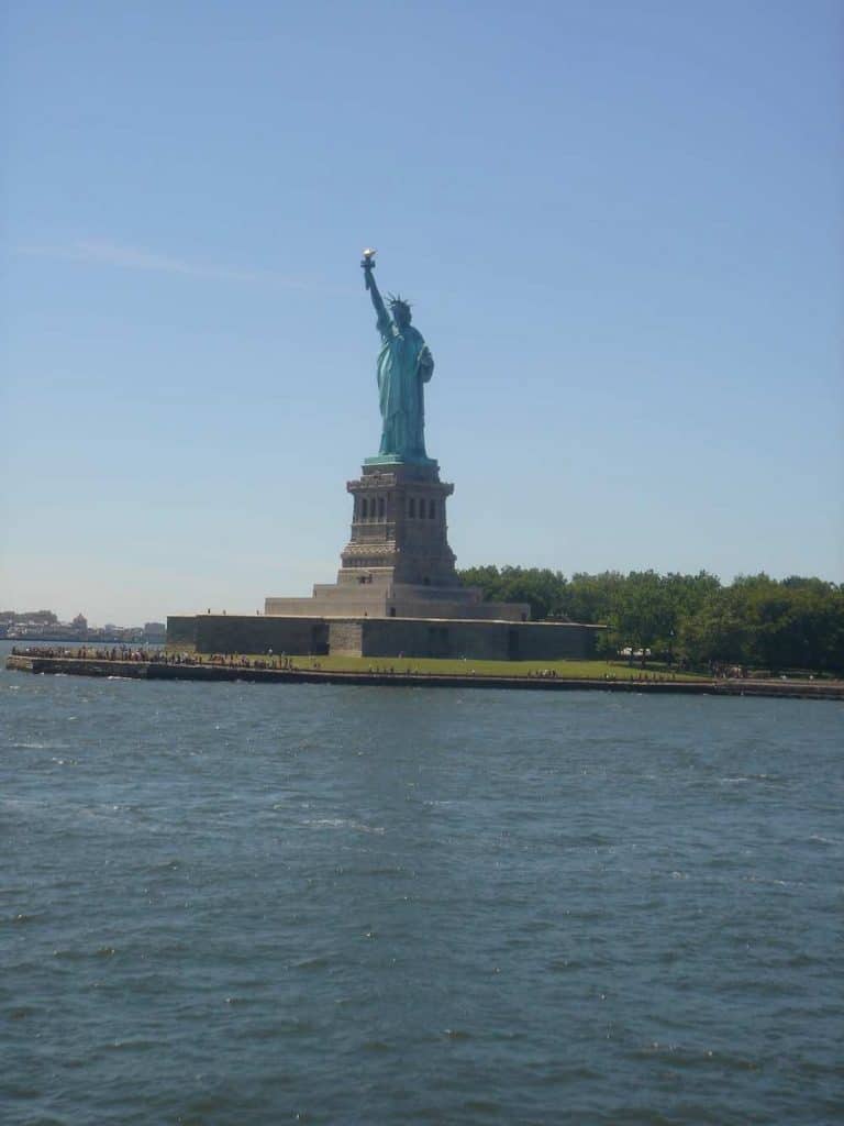 If you want to get a great photo of the skyline, head to the boardwalk and walk towards the end of the pier. You’ll be able to get an unobstructed view of the skyline and the lady of Liberty.