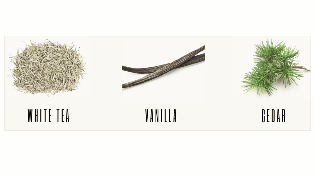 It is made up of top notes of white tea and base notes of woodsy cedar and vanilla. The scent is intended to be fresh and inviting, yet subtle enough not to overwhelm guests.